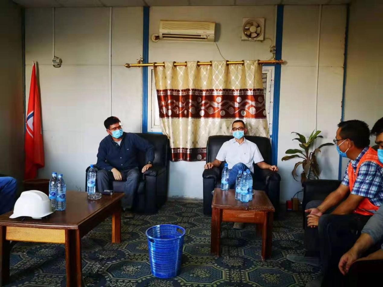 在大橋項目參觀慰問之后,龐總一行來到了中地海外中揚建設有限公司乍得經營管理部Gassi基地小會議室座談。龐總在座談會上詳細詢問并了解項目員工的身體健康狀況和防疫措施情況,由衷感謝海外員工家屬們的理解和支持。他指出,在如此艱難的一年,正是每一位海外一線員工的辛勤努力和奮力拼搏,舍小家為大家,用實際行動完成了2020年的生產目標,詮釋了駐外人的使命和擔當。會上,龐總與大家親切交談,把集團的深切關懷和衷心祝福送給每一位員工,共同探討疫情,總結過去,展望未來。2021年,是中國共產黨成立一百周年,是實施“十四五”規(guī)劃、開啟全面建設社會主義現代化國家新征程的第一年。以夢為馬,在中國夢的引導下,砥礪前行,共克時艱,再創(chuàng)佳績。同時在國家“十四五規(guī)劃”下,堅信我們駐外人在這其中扮演的重要角色,“駐外無小事”,一如既往地推動公司在海外順利發(fā)展。中地海外中揚建設有限公司總經理助理張竣對于集團公司領導的肯定和慰問表示最衷心的感謝,并承諾在新的一年里再接再厲,積極響應集團公司的抗疫規(guī)定和生產目標,始終把員工的生命安全和健康狀況放在第一位,不懼風雨來,以艱苦奮斗,創(chuàng)新發(fā)展的精神,在科學防疫的同時順利穩(wěn)步推進各項目的生產,各個擊破,給集團公司交上一份滿意的答卷。